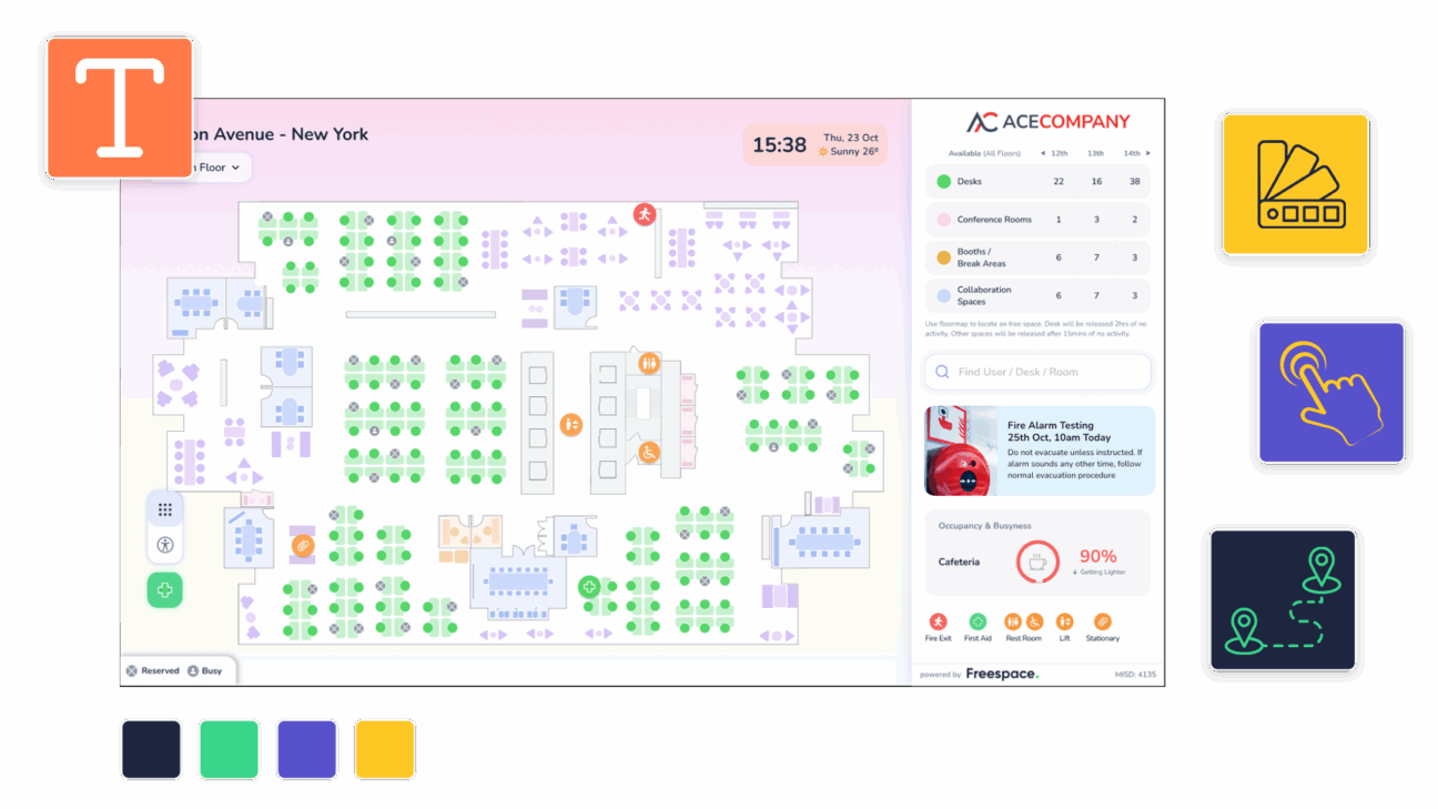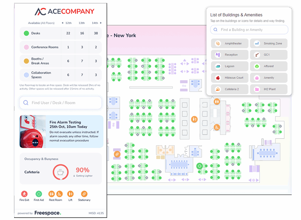 Freespace is the solution for increasing the connection to your organizational culture and improving the overall office experience for both employees and visitors. Quickly find available spaces across floors and navigate the workplace with ease.