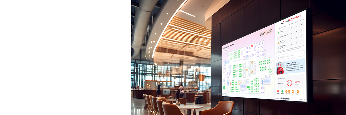 Sync digital signage with the Freespace platform for real-time updates on employee booking, check-ins or changes in space availability.