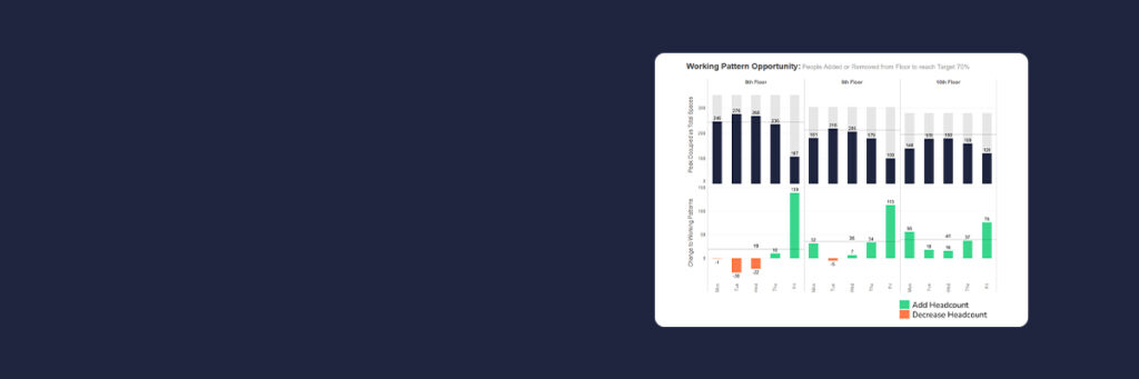 Unlock insights of multiple hybrid working patterns that best fit your business using team and floor constraints, building spatial flexibility, and predicting future capacity constraints. Make hybrid work for your business by continuously collected data and insights about daily occupancy and space utilization.